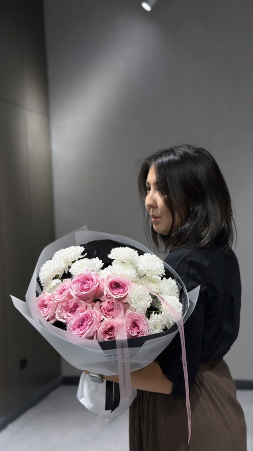 Pink O’Hara Roses & White Chrysanthemums Bouquet